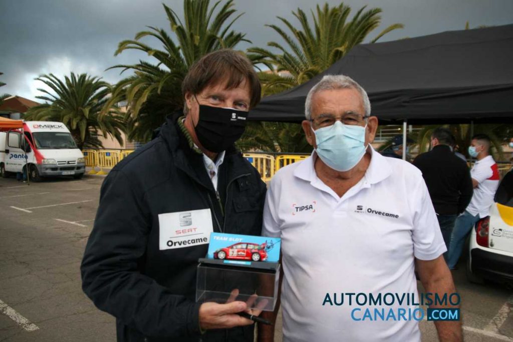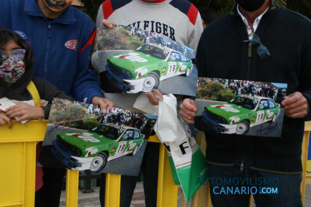 Primero fueron los hermanos Déniz, José Miguel y Javier, que se acercaron para que el primer canario en proclamarse campeón de España de Rallys les firma varios póster de cuando pilotaba el BMW M3. La imagen mostraba una trazada de la Subida de Tejeda de la temporada 1994.