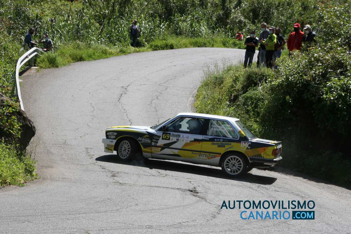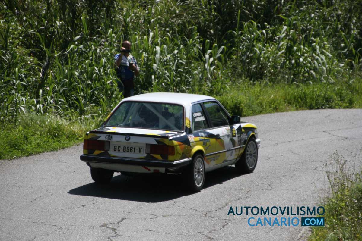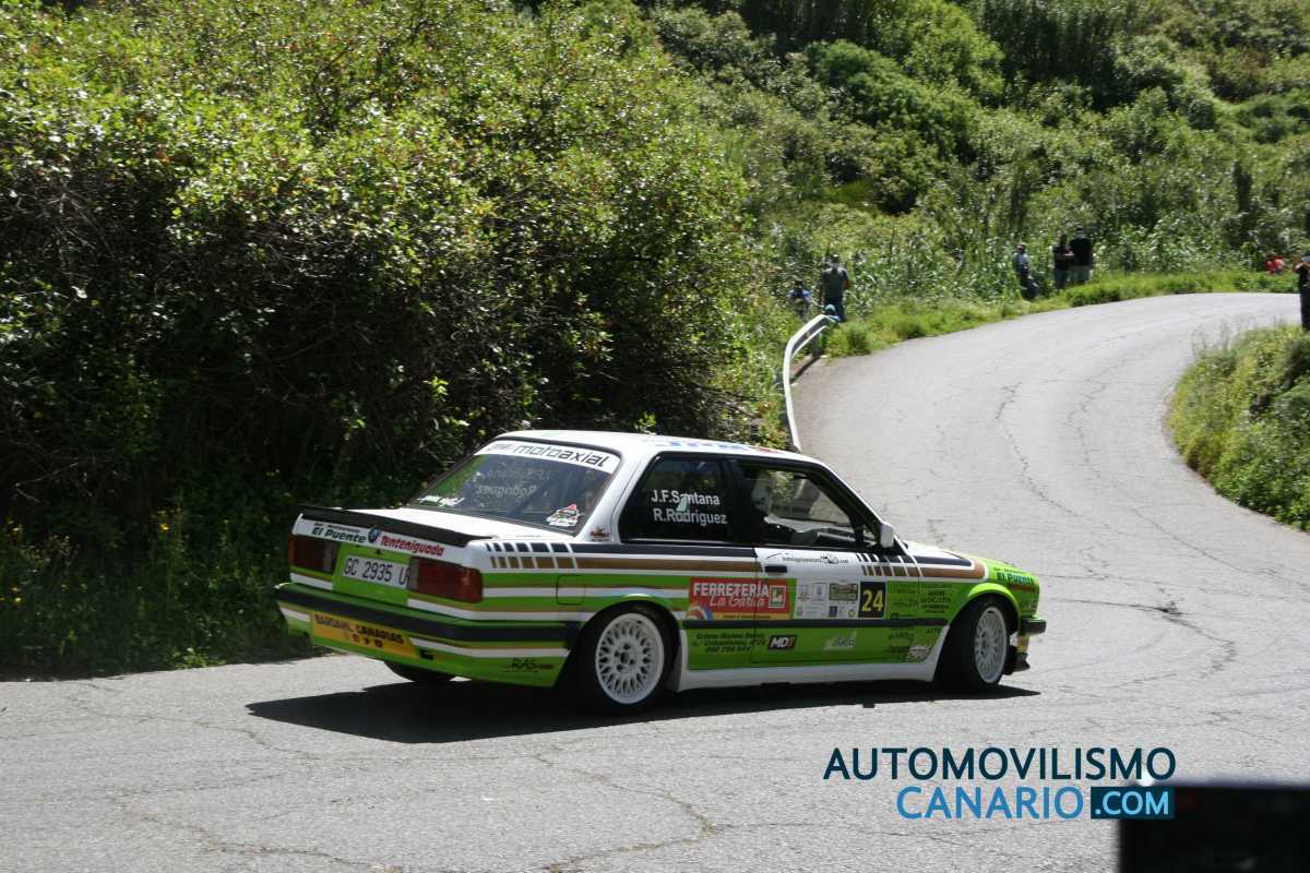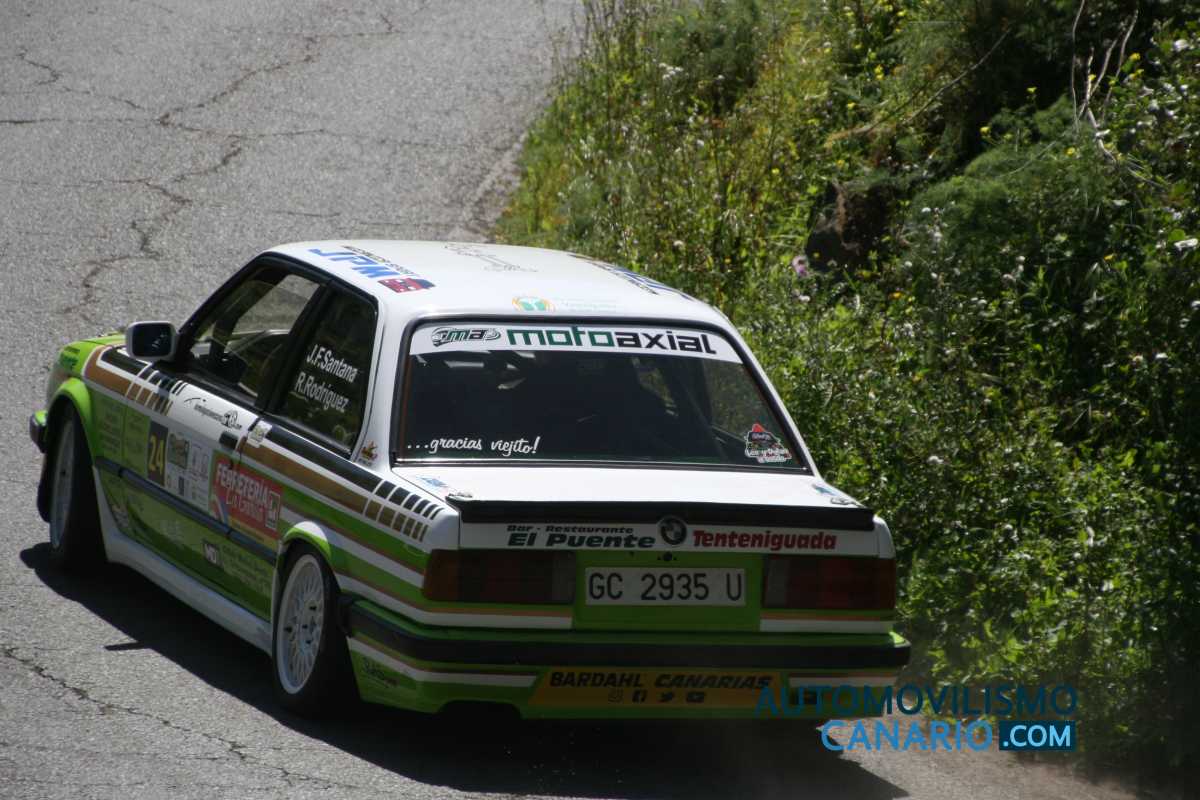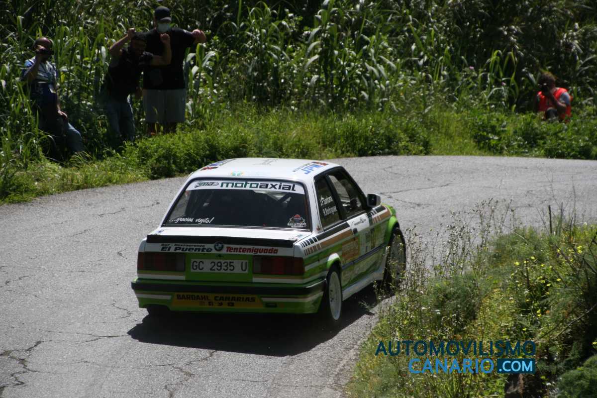 Un rapidísimo Autovintage RallyTeam (Santana – Rodríguez) volaba por los tramos del Santa Brígida sobre el 325i E30, en una batalla por el top10, liderazgo de grupo y destacado en la Copa hasta que una frenada sobre un cambio de asfalto les hacía encontrar el abandono en forma de golpe.