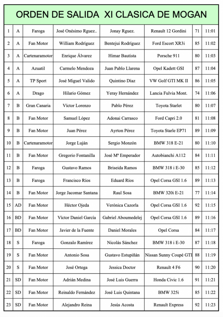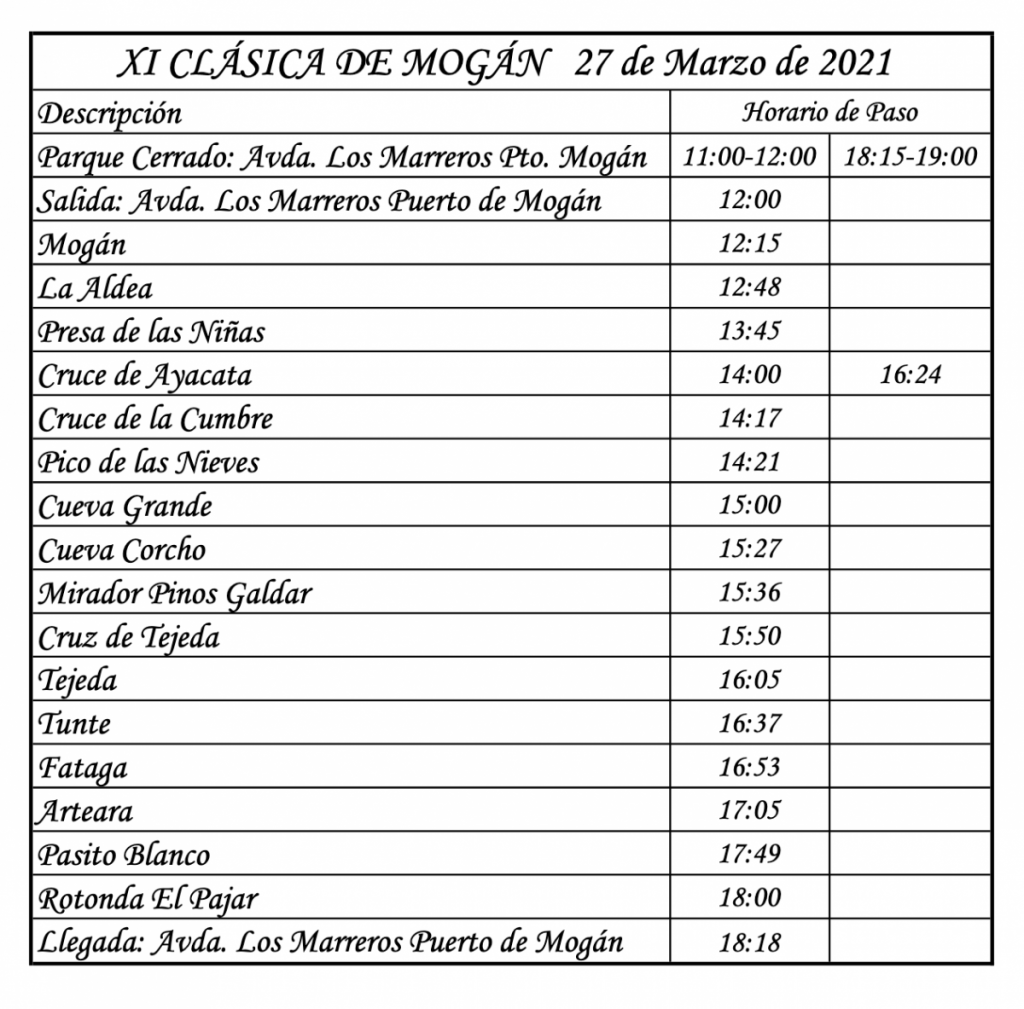 Publicamos el orden de salida y horarios de paso de la XI Clásica de Mogán, prueba que se celebrará este sábado en la isla de Gran Canaria.