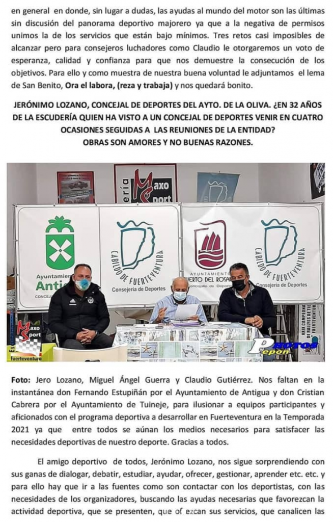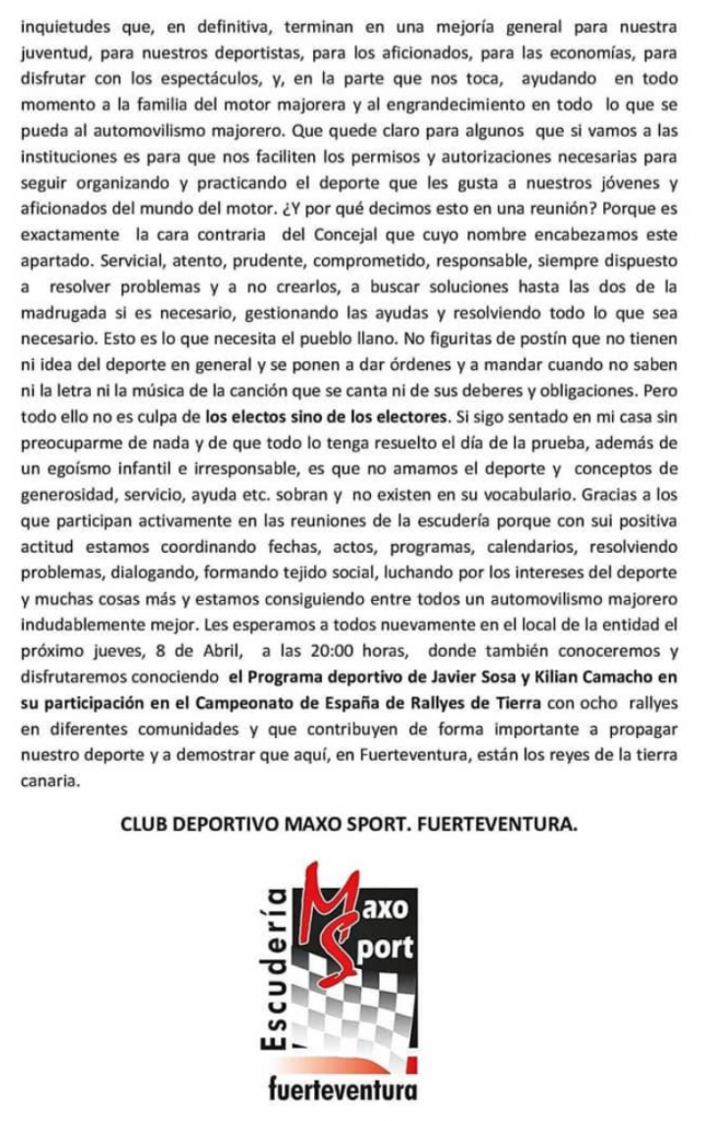 El automovilismo majorero, por medio de la Escudería Maxo Sport, agradece la unión y la opinión de sus pilotos