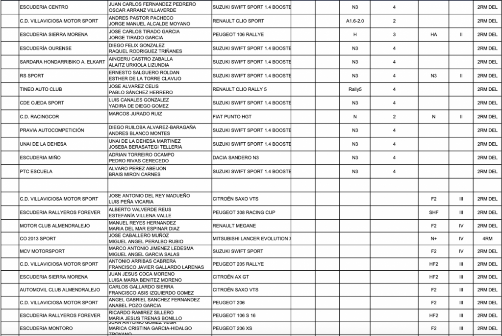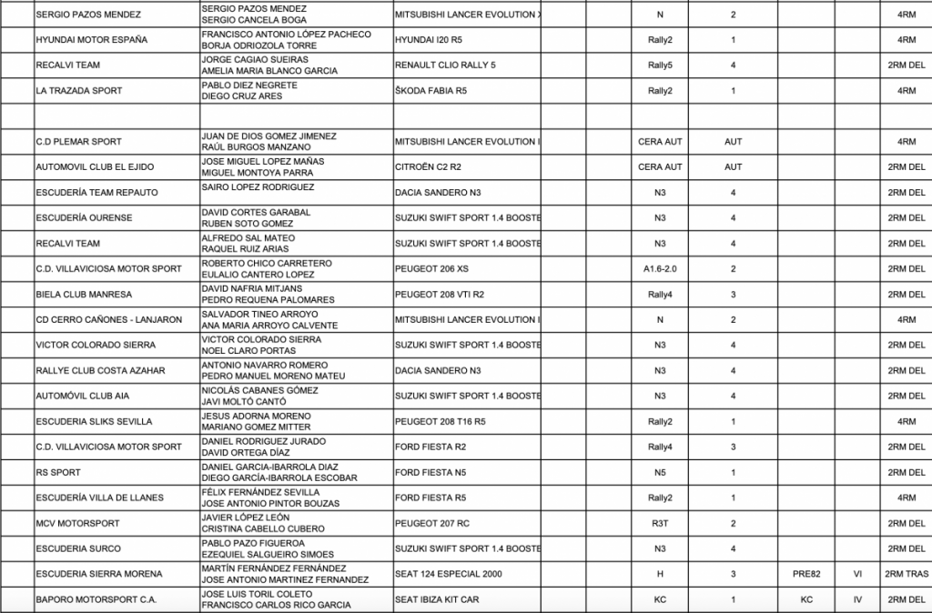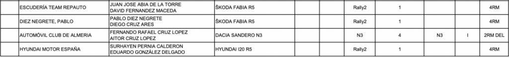 En la lista provisional de inscritos están con unidades R5 Surhayen Pernía, Luis Vilariño, Óscar Palacio, Paco López, Félix Fernández, Pablo Díez, Juan José Abia y Eduard Pons, además de los Suzuki oficiales de Joan Vinyes y Javier Pardo.