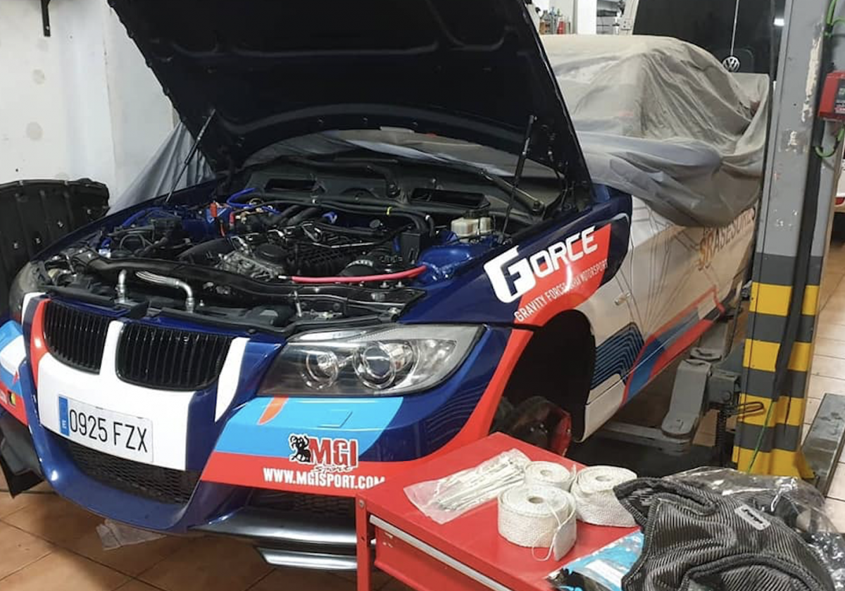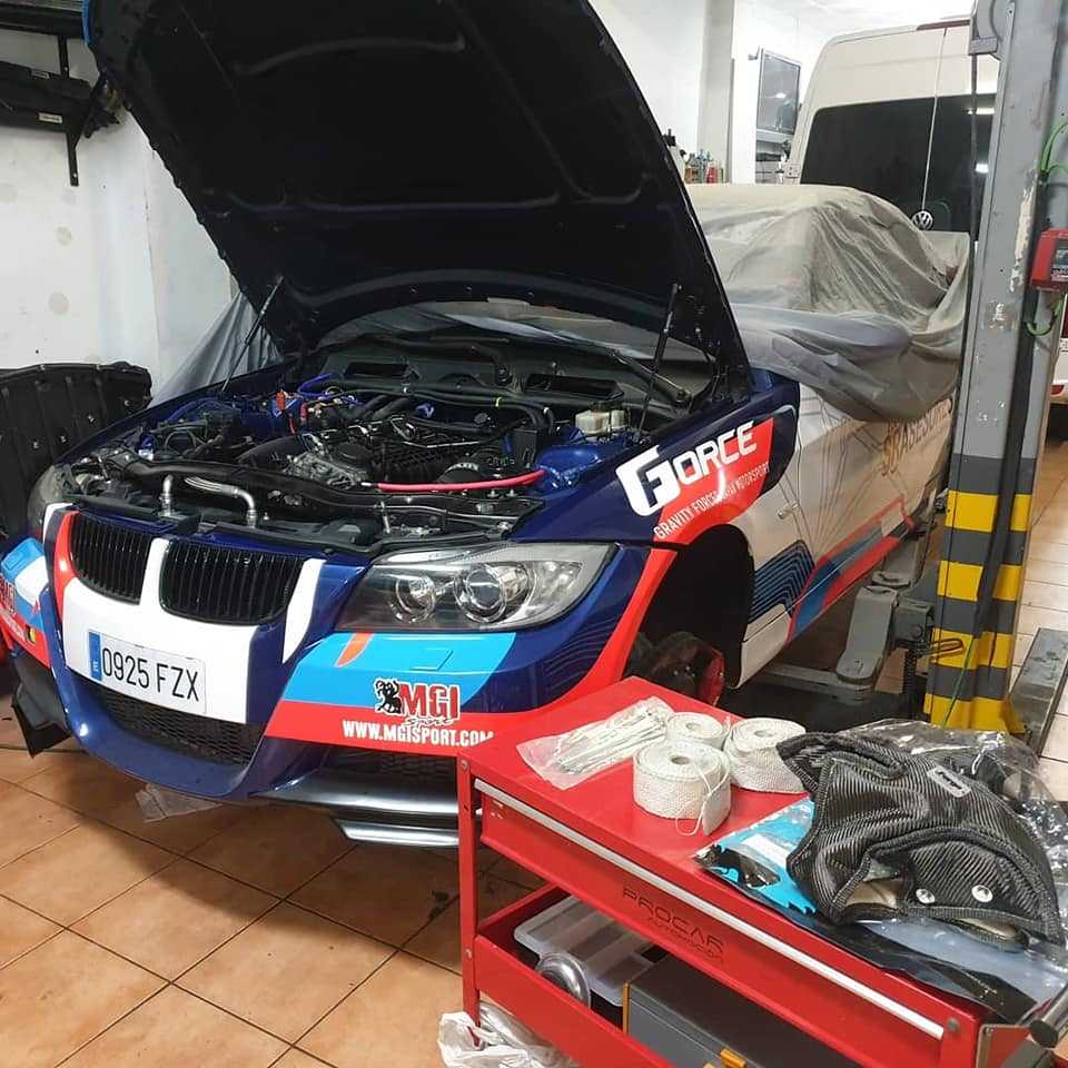 Será por la motivación del Rallye de Santa Brígida, pero aquí me veo un domingo por la mañana haciendo lo que me gusta, trabajando sobre el BMW 335I instalando mantas calorías Forge para los turbos y aislantes anticaloricos en la línea de escape gracias a Mgi Sport #unbuencochemilpequeñosdetalles #rocketmotorsport