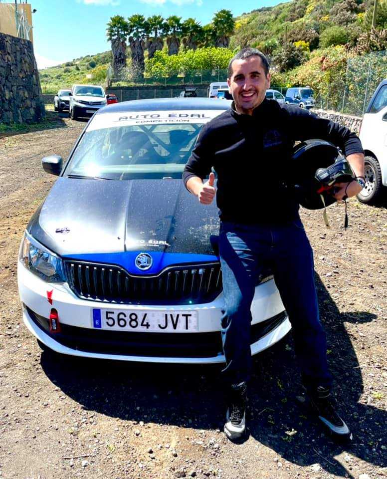 Borja Pérez Sicilia, Alcalde de Breña Baja y Senador por la isla de La Palma, es un apasionado de los rallys desde su juventud. Siempre ha estado vinculado directa o indirectamente en las diferentes pruebas que se han celebrado en las islas, especialmente en la suya, La Palma. Antes colaboraba en las pruebas y ahora, desde su puesto político, hace lo que puede y más para que diferentes eventos se puedan celebrar. Gracias a esos contactos ha podido disfrutar de una jornada racing en el circuito de Adea con un Skoda Fabia de la Copa.
