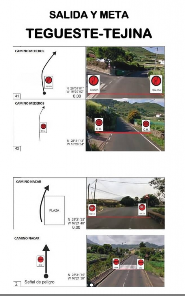 Por ejemplo, las fotos de la salida y meta del tramo en sus dos versiones.