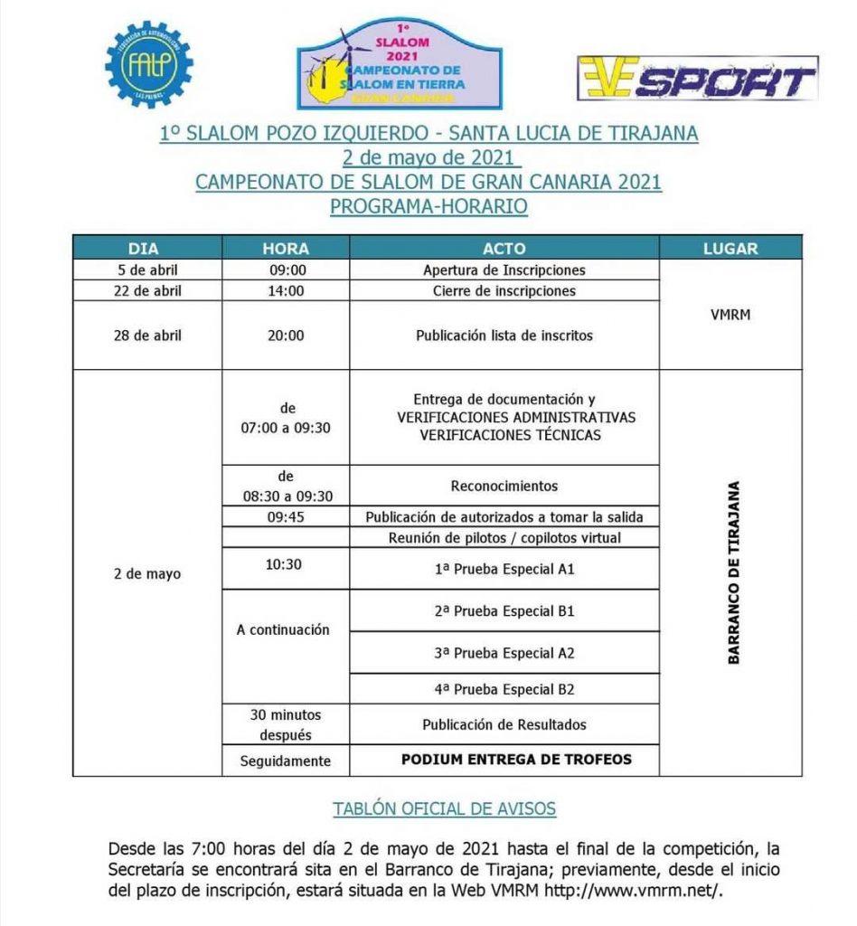 El I Slalom Pozo Izquierdo Santa Lucía de Tirajana abrirá su periodo de inscripción el próximo 5 de abril para una competición que se espera poder celebrar el 2 de mayo en la zona sur de la isla de Gran Canaria.