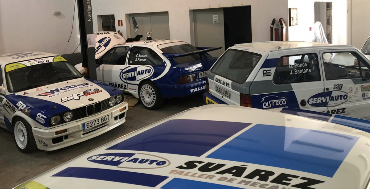 Así tenemos el garaje a estas alturas, #ServiAutoSuárez en todas las monturas y con cada coche en una competición distinta. ¡Por carreras que no sea!