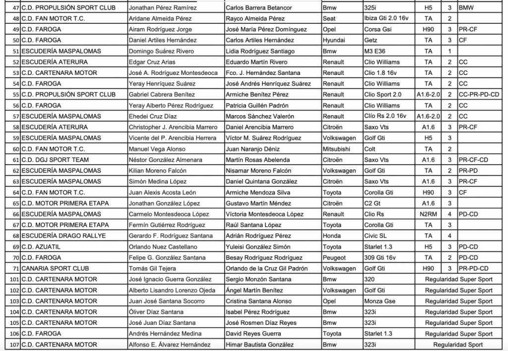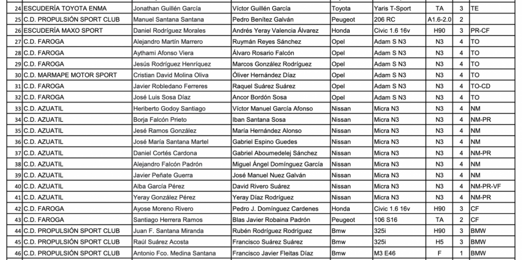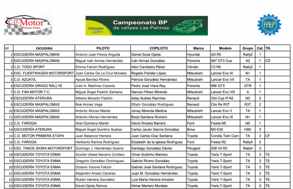 Lista oficial de Inscritos 45 Rally Ciudad de Telde