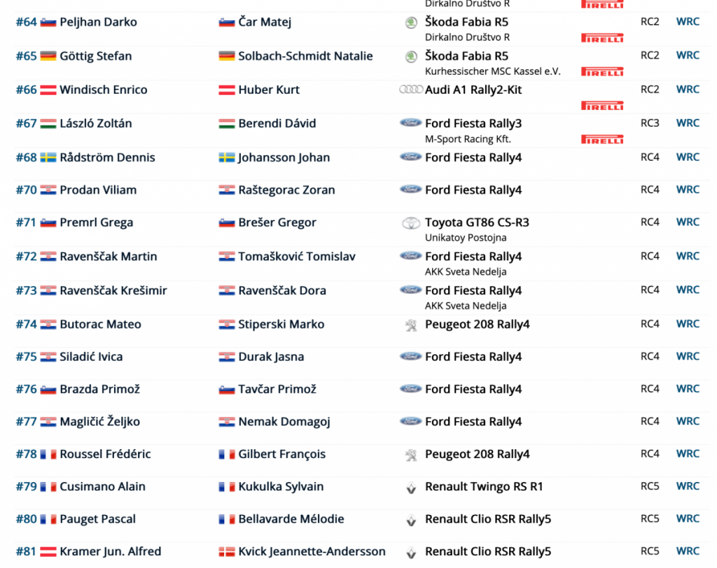 El Rally de Croacia, tercera prueba del Campeonato del Mundo de Rallys, que se correrá sobre asfalto del 22 al 24 de abril, ha publicado su lista de inscritos, que cuenta con un total de 68 equipos.