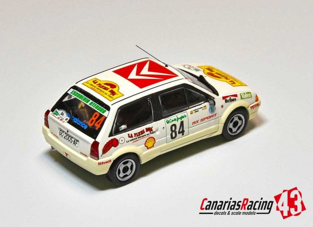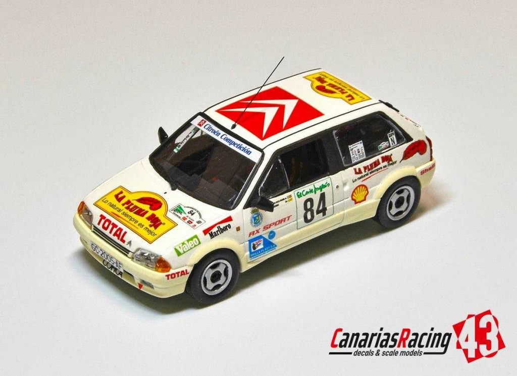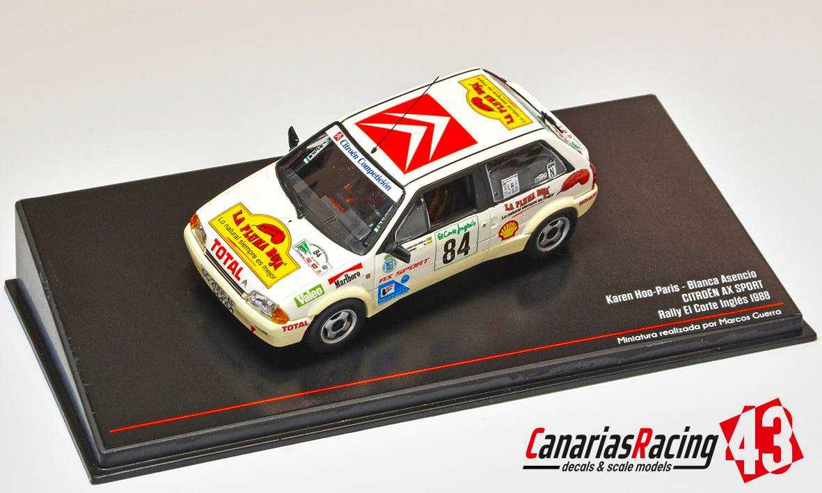 Publicamos la maqueta realizada por parte de Marcos Miniaturas del Citroën con el que las españolas Karen J. Hoo-Paris y Blanca Asencio participaron en el Rally El Corte Inglés , hoy Rally Islas Canarias, en la edición de 1988.