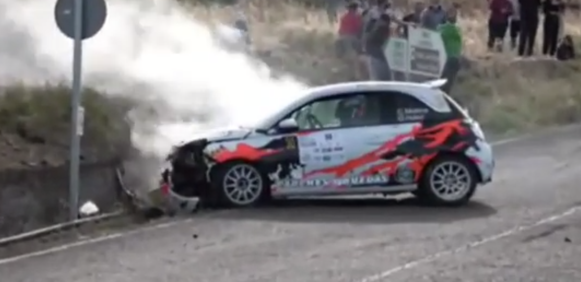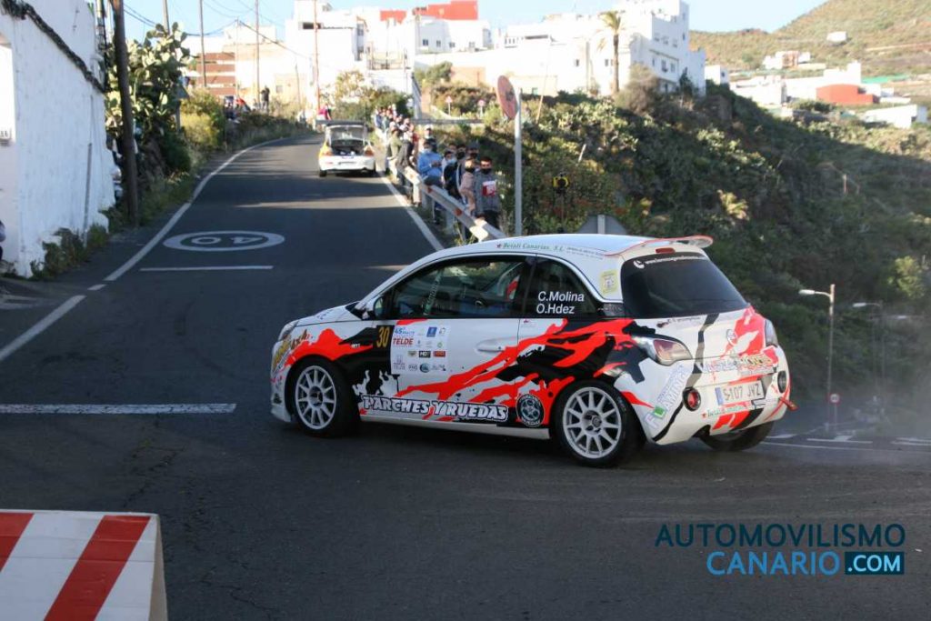 El Rally Ciudad de Telde no fue el esperado para los lanzaroteños Cristian David Molina y Oliver Hernández, puesto que una salida de carretera con su Opel Adam N3 les dejó fuera de la competición.