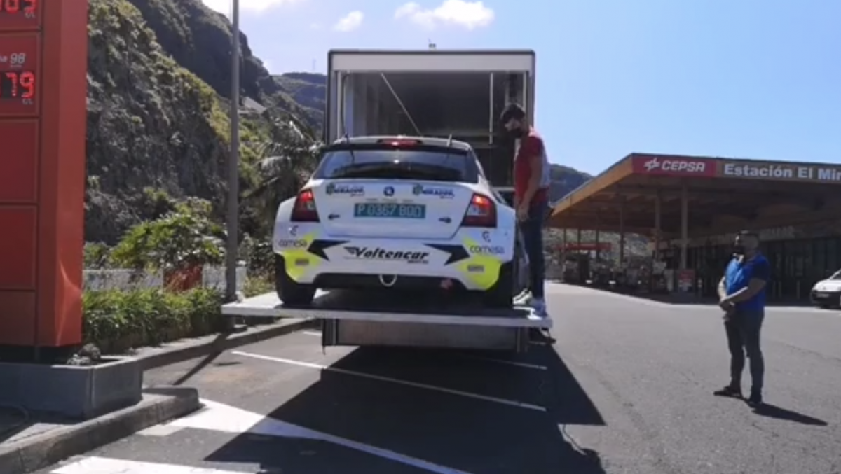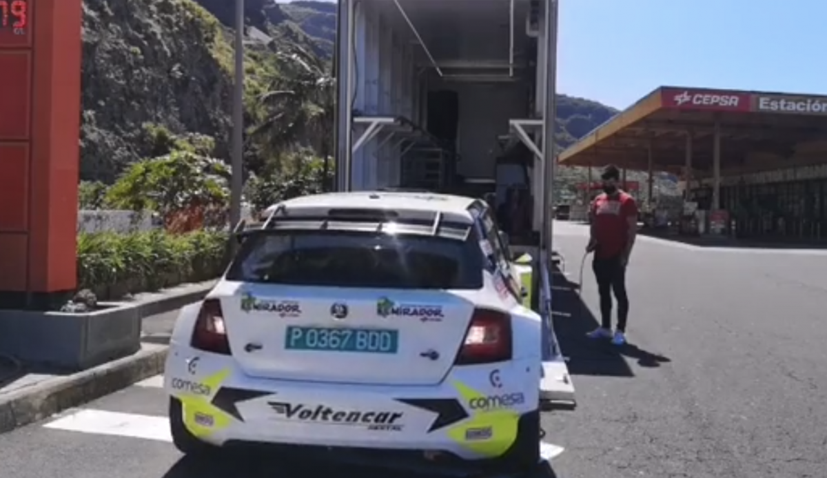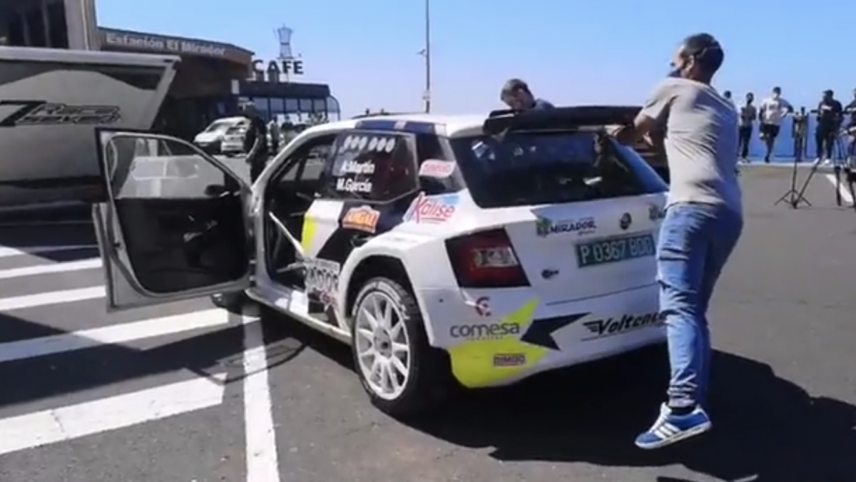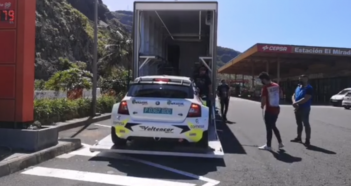 Publicamos varias capturas del vídeo realizado por parte de SRcanarias de la llegada del Škoda Fabia R5 EVO a la Estación de Servicio El Mirado, en el norte de Tenerife, donde fue presentado y expuesto.