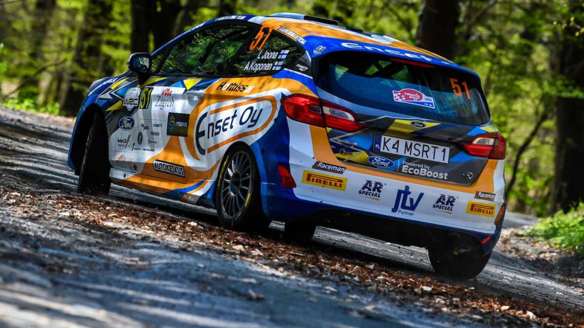 El eslovaco sólo ganó una de las siete especiales completadas en su Ford Fiesta Rally4, pero un fuerte ritmo en las restantes especiales le permitió construir una práctica ventaja de 21,5 segundos sobre Lauri Joona.