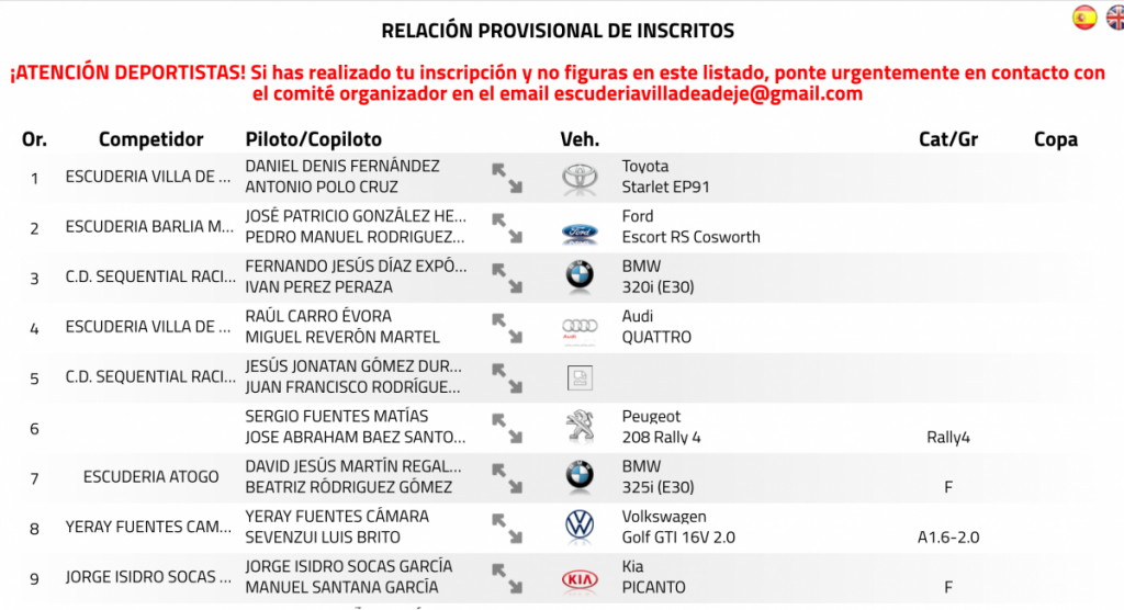 Poco a poco se van conociendo nombres de equipos nacionales y canarios que estarán inscritos en el Rally Villa de Adeje, cita del SuperCampeonato de España de Rallys, como es el caso de algunos peninsulares, como el cántabro Surhayen Pernía (Hyundai i20 R5), el gallego Luis Vilariño (Skoda Fabia R5) y el murciano Paco López (Hyundai i20 R5), mientras que entre los equipos canarios ya están Enrique Cruz (Ford Fiesta R5), Fran Suárez (Ford Fiesta R5), Raúl Carro (Audi Sport Quattro S1 E2) y Ángel Bello (Hyundai i20 R5) como más destacados entre los 31 equipos inscritos.