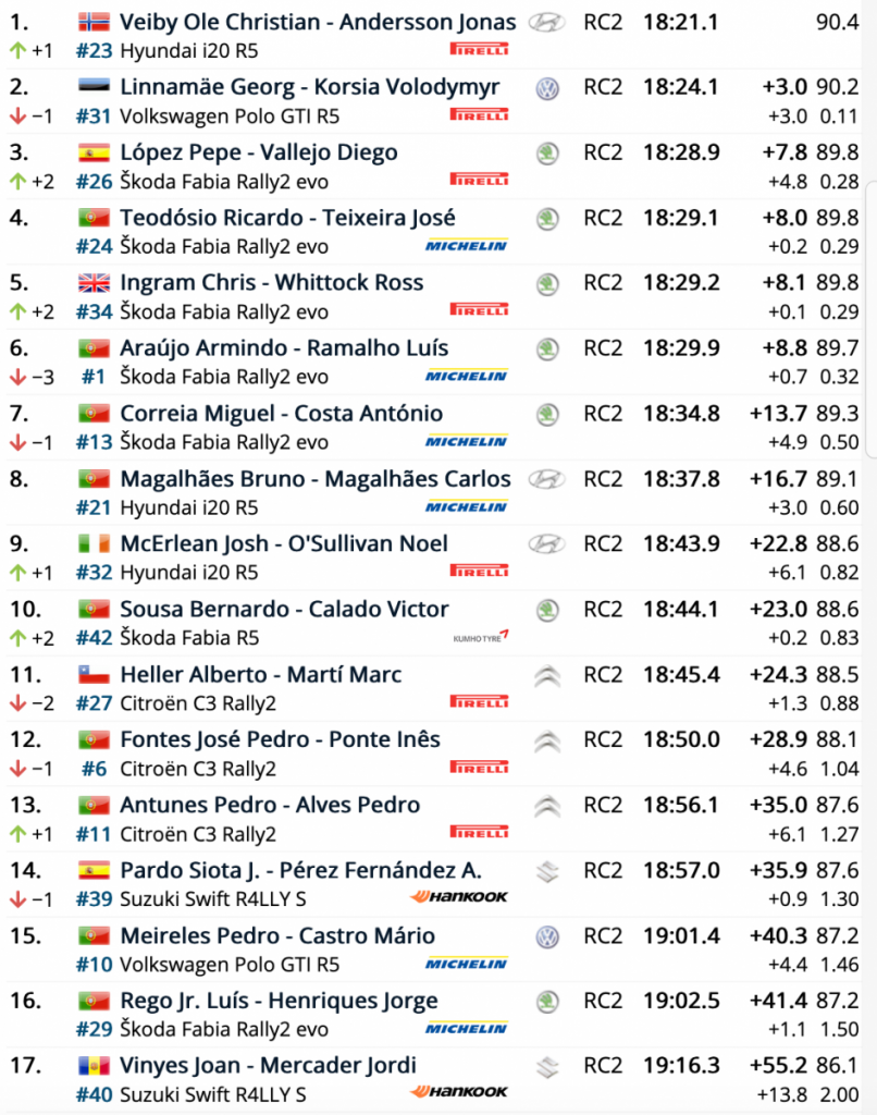 Con dos de las siete especiales de la cita lusa ya superadas, la pareja española se estrena con una sensacional tercera plaza provisional tras la primera jornada a bordo del Škoda Fabia Rally2 evo.