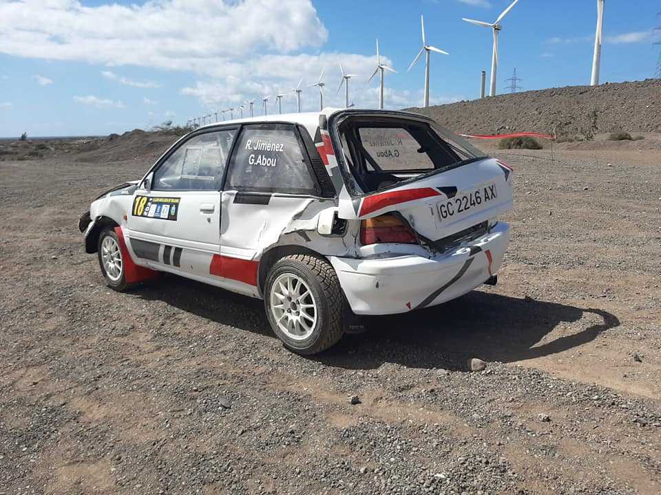 Rubén Jiménez y Gabriel Abou acudían ilusionados con el Toyota Starlet a competir en el Slalom de Pozo Izquierdo, pero un vuelco, por suerte sin consecuencias físicas, truncó todo lo planeado.