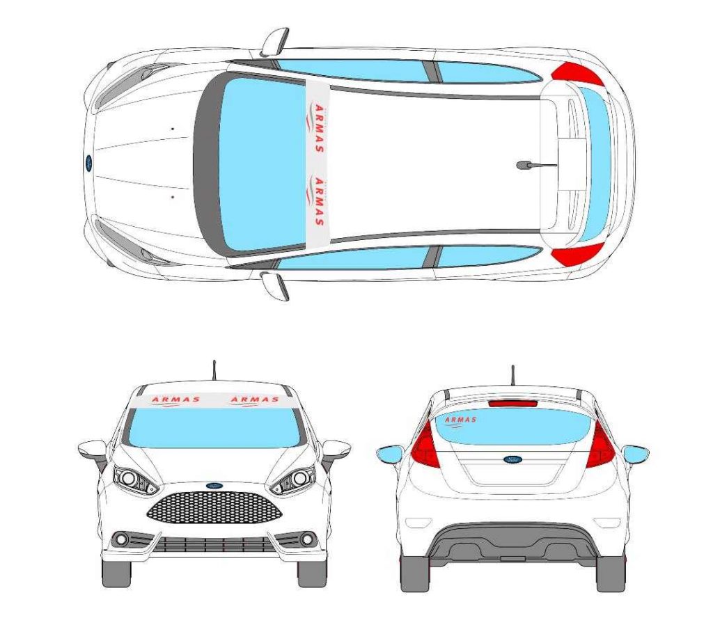 Los equipos inscritos en este campeonato de promoción deberán ubicar en su parabrisas la publicidad de Naviera Armas, un logo reflejado de manera doble (imagen adjunta). La medida del parasol ha de ser de 10 cm por todo el ancho del parabrisas. A ésta hay que añadir otra pegatina de la naviera oficial de la FIALP en la parte alta izquierda de la luneta trasera.