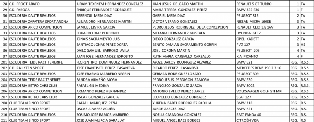 Entre los equipos inscritos, destaca la participación de Pedro Javier y Javier Afonso abordo del Ford Fiesta Evo II, Fran Suárez y Néstor Gómez con Ford Fiesta R5 MK2, Conrado Ávila y Eduardo Quintero Skoda Fabia o los Peugeot 208 Rally 4 de los equipos Fernando Cruz y Cristián Hernández, y Sergio Fuentes con José Abraham Baez.
