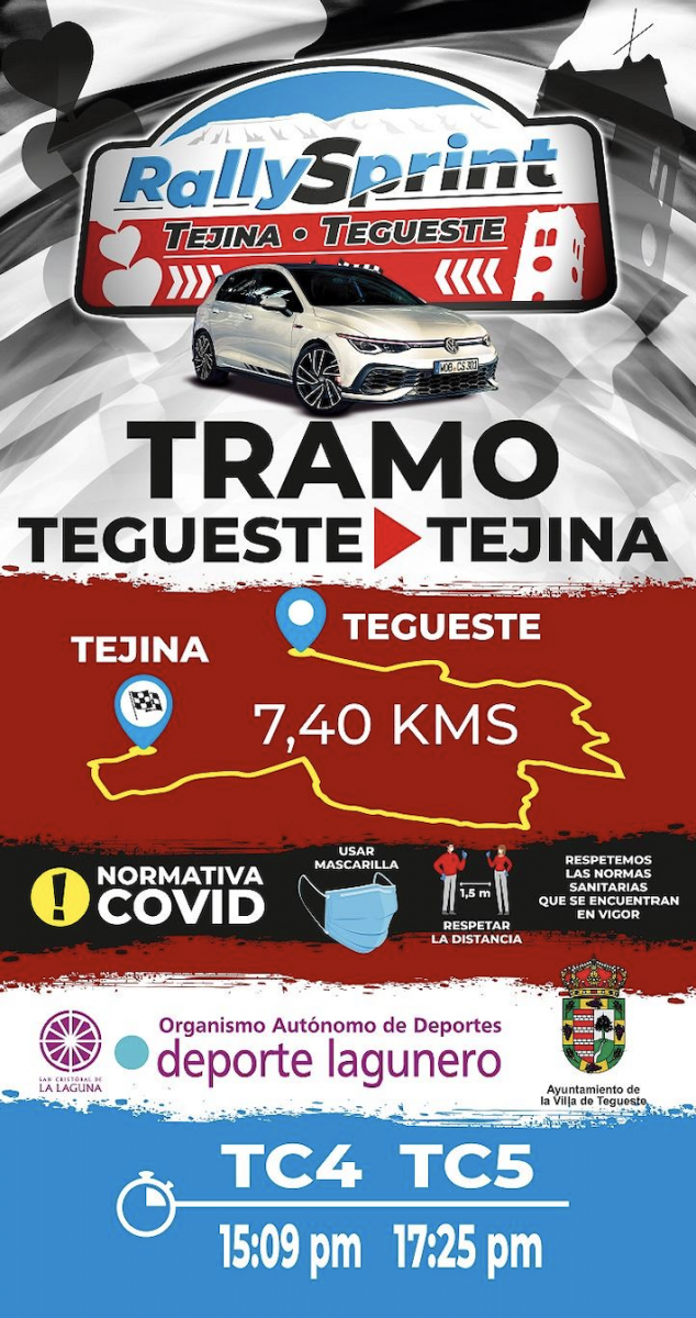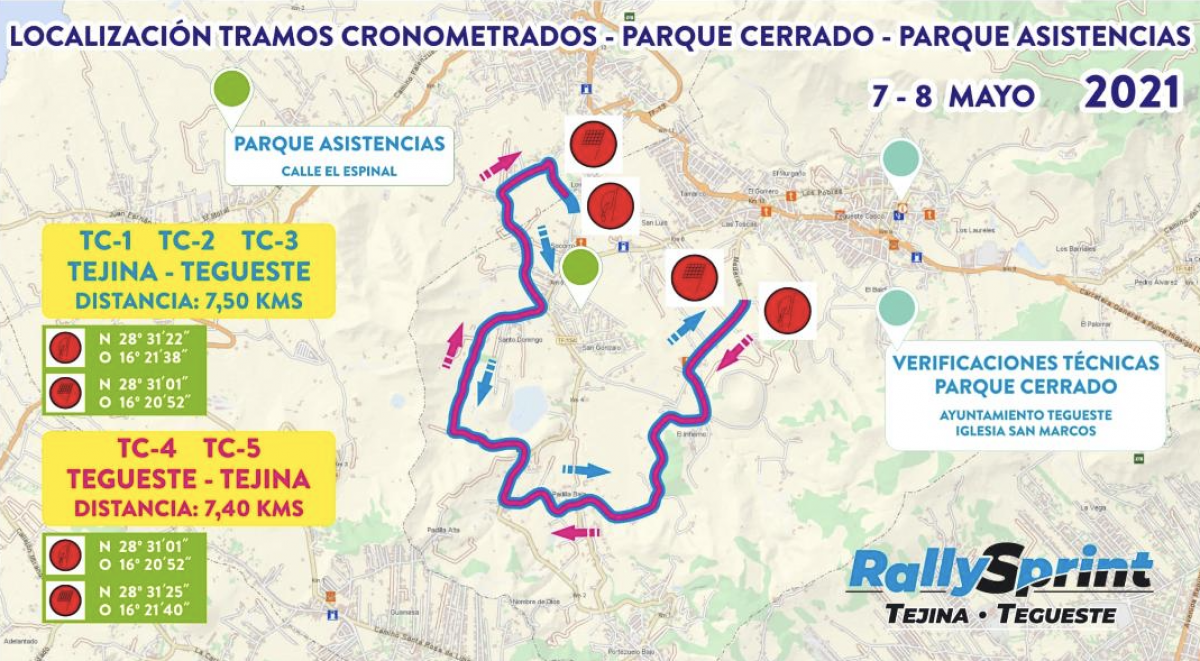 La prueba, a desarrollar el próximo sábado 8 de mayo, se repartirá en 5 tramos cronometrados, los tres primeros en sentido Tejina a Tegueste, y los dos últimos, Tegueste a Tejina. Los mismos arrancarán a las 08.30 horas de la mañana del sábado, si bien, los cierres de carretera están previstos para una hora antes del comienzo de cada especial.