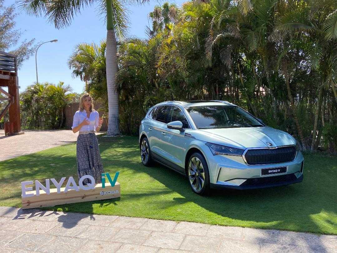 ŠKODA Canarias ha dado la bienvenida a uno de los modelos más esperados de los últimos años: el primer SUV 100% eléctrico de la marca, el ŠKODA ENYAQ iV. En un encuentro con la prensa, adaptado a las medidas Covid-19, la firma ha desvelado todos los detalles del modelo con el que confía seguir cosechando grandes resultados en el mercado canario. ŠKODA Canarias recibe su primer SUV 100% eléctrico tras colocarse, por primera vez, en la séptima posición del ranking de ventas en el primer cuatrimestre de 2021. Paralelamente la marca “Simply Clever” presentó el nuevo modelo en streaming a través de sus redes sociales.