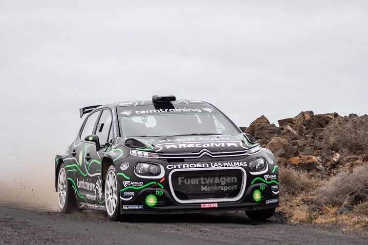 El lanzaroteño Yeray Lemes y el grancanario Rogelio Peñate han estado este domingo de test con el Citroën C3 R5 propiedad de Emma Falcón.