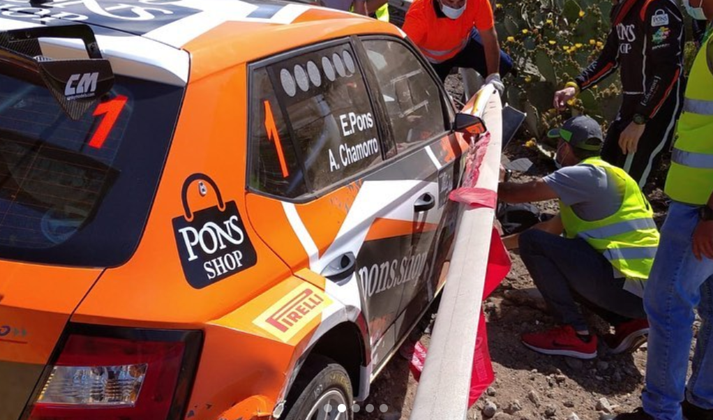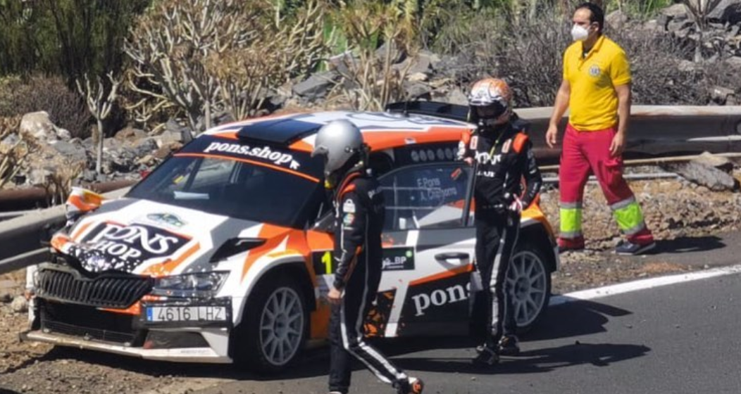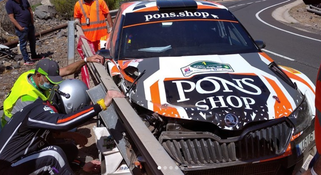 Los equipos peninsulares formados por Eduardo Pons – Alberto Chamorro (Skoda Fabia R5) y José Luis Peláez y Rodolfo del Barrio (Volkswagen Polo GTI R5) han sufrido sendos incidentes en el Shakedown del Rally Villa de Adeje que han dejado sus monturas dañadas y son seria duda para la disputa de los tramos de la tarde de este viernes, que es cuando arranca la competición.