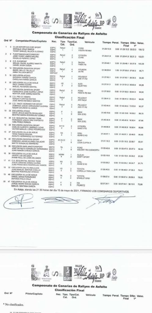 Las cosas se han hecho muy bien, debemos agradecer a la Federación Canaria De Automovilismo Fca que haya incluido en la clasificación a todos los compañeros, independientemente de los grupos.