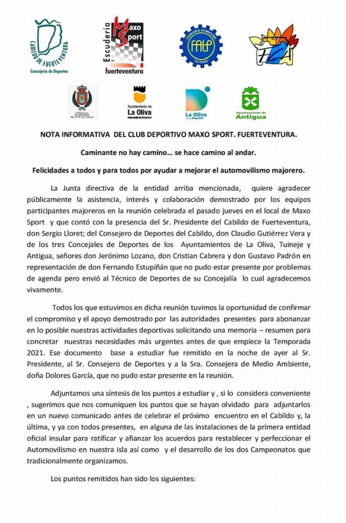 La Escudería Maxo Sport se ha mostrado agradecida por el interés mostrado por los equipos majoreros presentes en la última reunión.