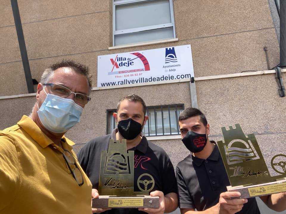 Poli Delgado, presidente de la Escudería Villa de Adeje, cita del SuperCampeonato de España de Rallys, Campeonato de Canarias y Tenerife de Rallys, entregó su trofeo a los pilotos tinerfeños Rañul Carro.