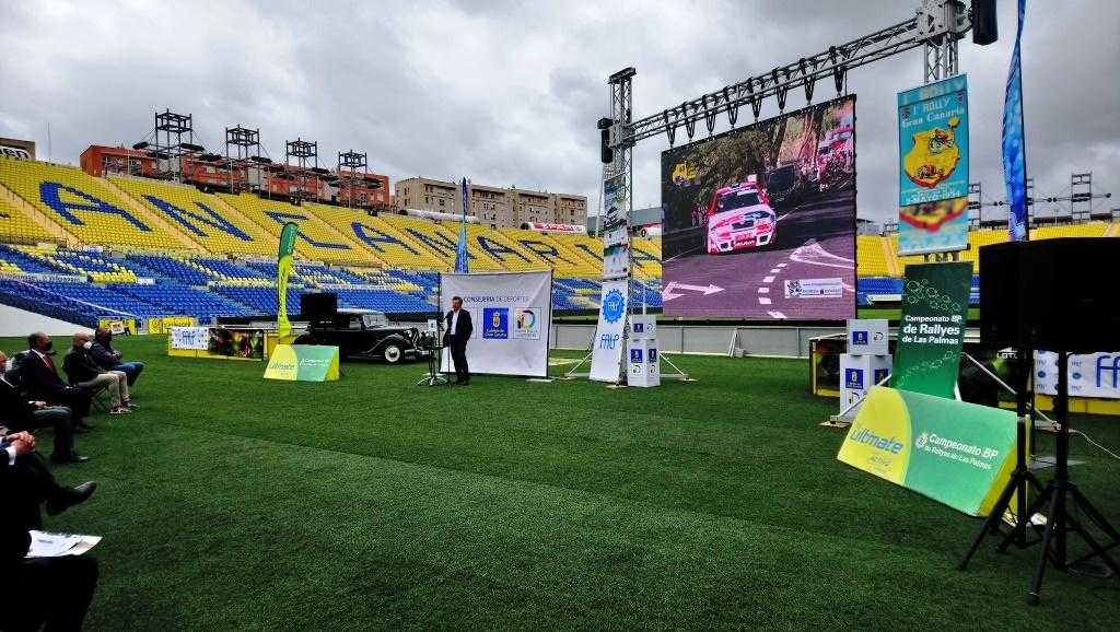 Momentos antes de comenzar el acto desarrollado sobre el césped del Estadio de Gran Canaria, llegaba al escenario un Citroen 11 similar al que conquistó la primera victoria en 1954, cedido por su propietario Manuel Verona. A continuación intervino Juan José Alonso, veterano informador, copiloto ganador del rallye en varias ocasiones y hasta organizador del mismo, que ofreció varias pinceladas de la leyenda de esta prueba completando las imágenes proyectadas sobre diferentes ediciones, incluso con la sorpresa de una de las primeras que fue recogida por el Nodo de TVE en 1957.