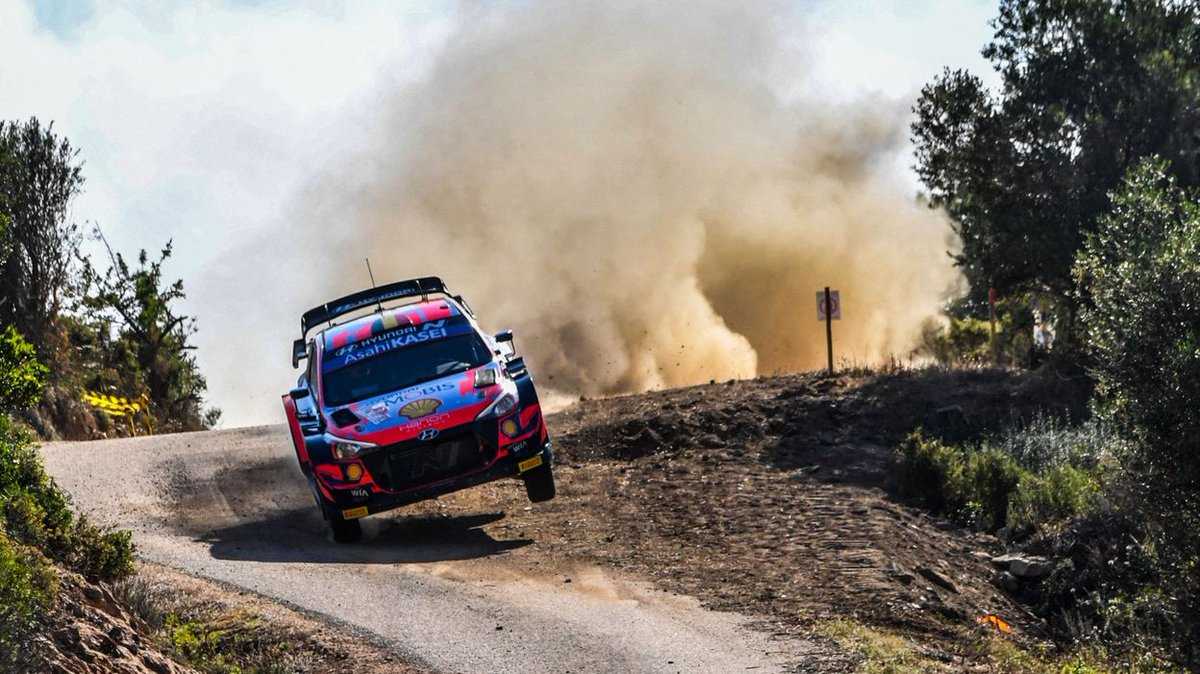 Los estonios Ott Tänak y Martin Järveoja (Hyundai i20 Coupe WRC), después de vencer en cinco de las ocho especiales celebradas en el Rally de Cerdeña (Italia), lo que le ha valido para superar a sus compañeros de equipo, los españoles Dani Sordo y Borja Rozada (Hyundai i20 Coupe WRC), en 19.4.