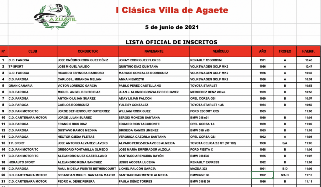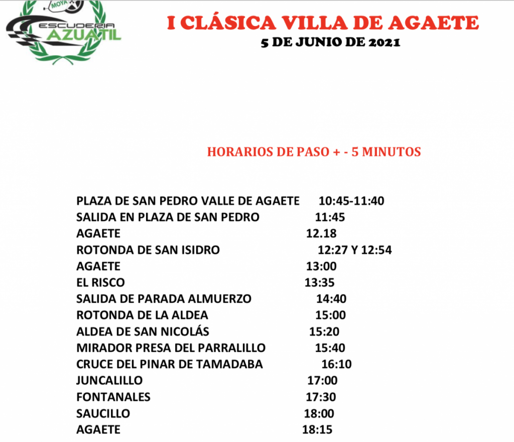 Este sábado 5 de junio se disputa la I Clásica Villa de Agaete, prueba de regularidad para vehículos clásicos, bajo la co-organización fruto de la colaboración del CD. Azuatil y la dirección del comité formado por Pablo Llarena y Carmelo Mendoza.
