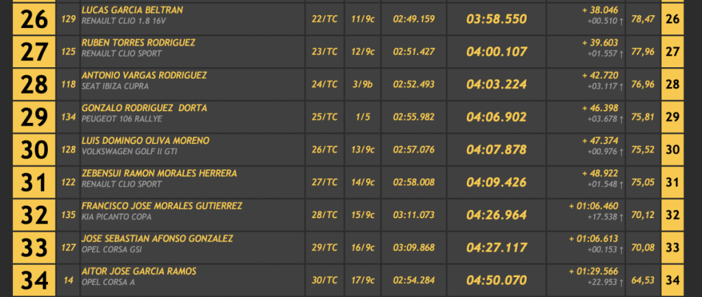 En turismos Brito, que tuvo una salida de pista el sábado, logró demostrar que lo anotado en los entrenos tendría continuidad, superando en sólo 0.430 Berti Díaz (Porsche 911 GT3 Cup Rallye 2008), siendo tercero Jonathan García Palenzuela (Porsche 911 GT3 2010).