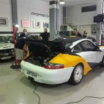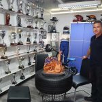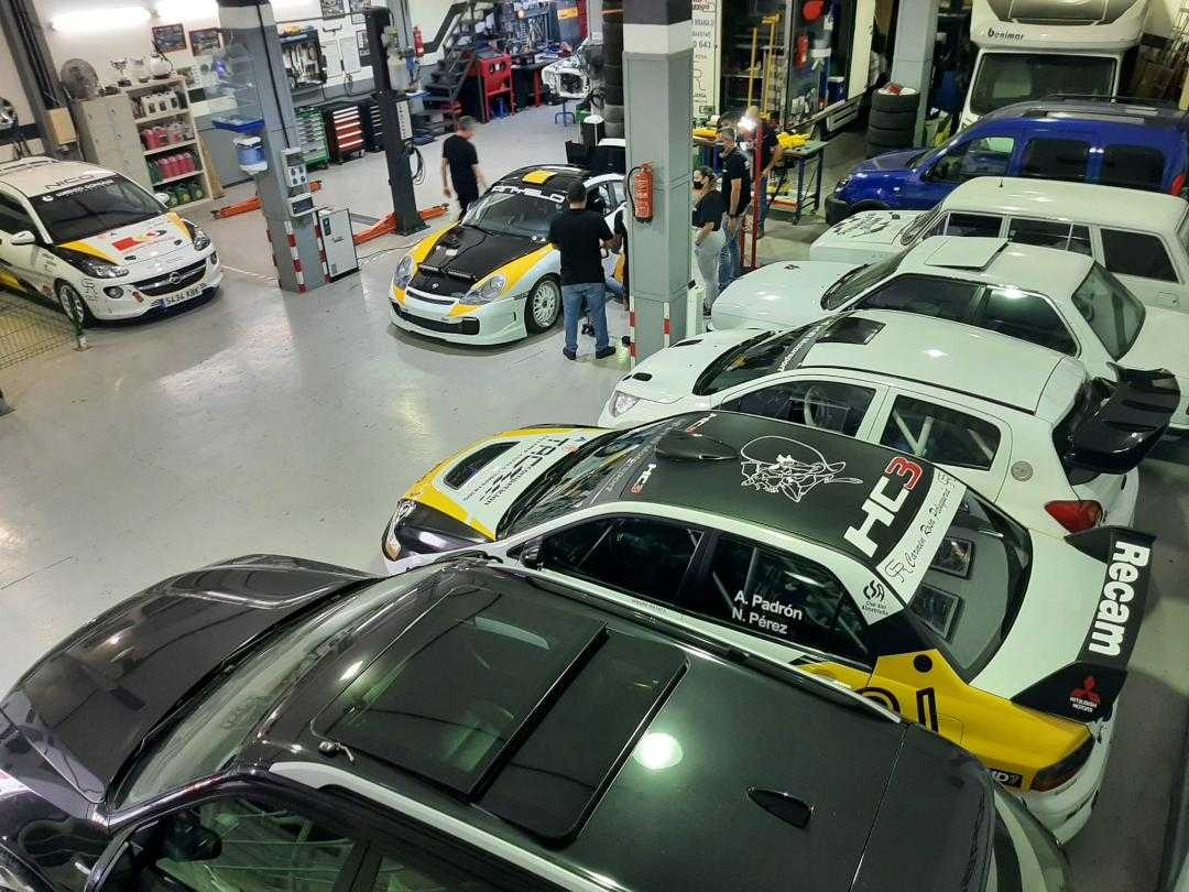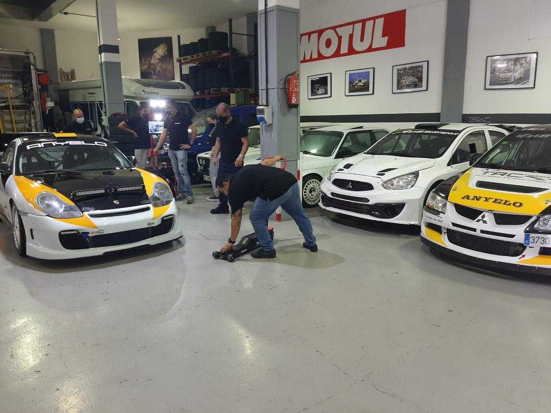 Un mini museo de los logros de Anyelo, una oficina, una zona para comer y un amplio garaje donde están sus Mitsubishi Lancer Evo VIII, el Mitsubishi Mirage Proto, el Porsche 996 GT3, el BMW 325 i y el último en llegar, el Opel Adam.