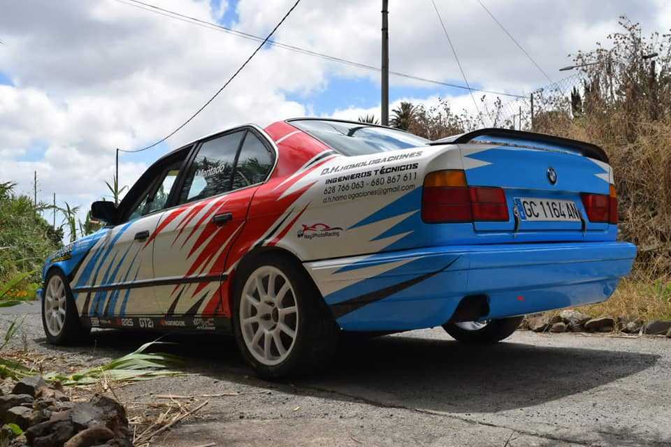 El piloto grancanario Isidro Mentado ha trabajado en la mecánica y rotulación de su BMW 535, unidad con la que correrá la Subida de Arucas