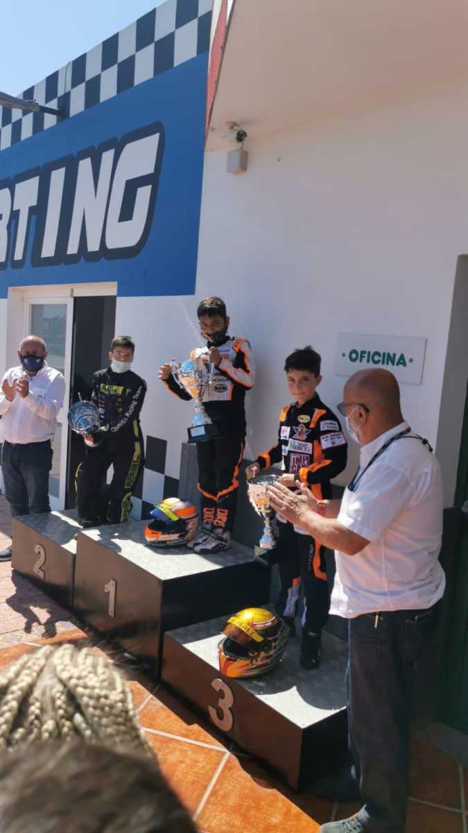 Jorge tiene 9 años y lleva como dos temporadas y media en este mundo. Arrancó en la Escuelita en el Karting Club de Tenerife, y gracias a que es un muy buen estudiante su familia, natural de La Laguna, madruga los fines de semana para que pueda ir a entrenar. Los entendidos afirman que tiene futuro, puesto que ‘muy limpio y fino en las trazadas’, algo que demostró este fin de semana en Lanzarote.