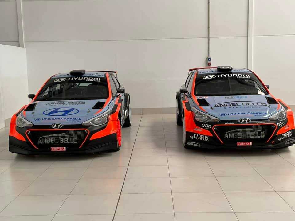 El piloto tinerfeño Ángel Bello ha mostrado en sus redes sociales las dos unidades de Hyundai i20 R5 de su propiedad.