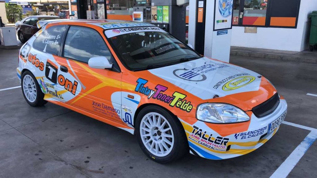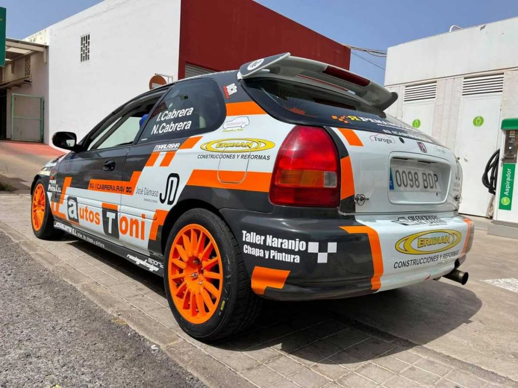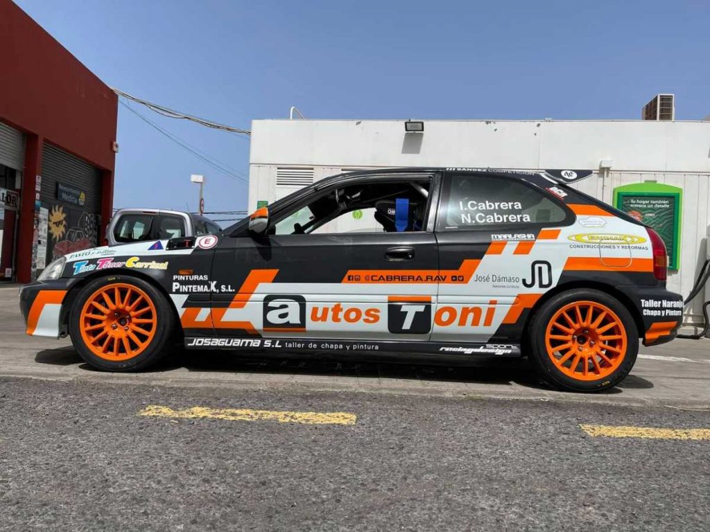 El cambio de imagen respecto a la montura que rodó en el Rally Villa de Santa Brígida era notorio, pero un simple cambio posterior de color de las llantas, que complementan la nueva rotulación final, hacen del Civic de los Cabrera aún más bonito. ¡Felicidades!