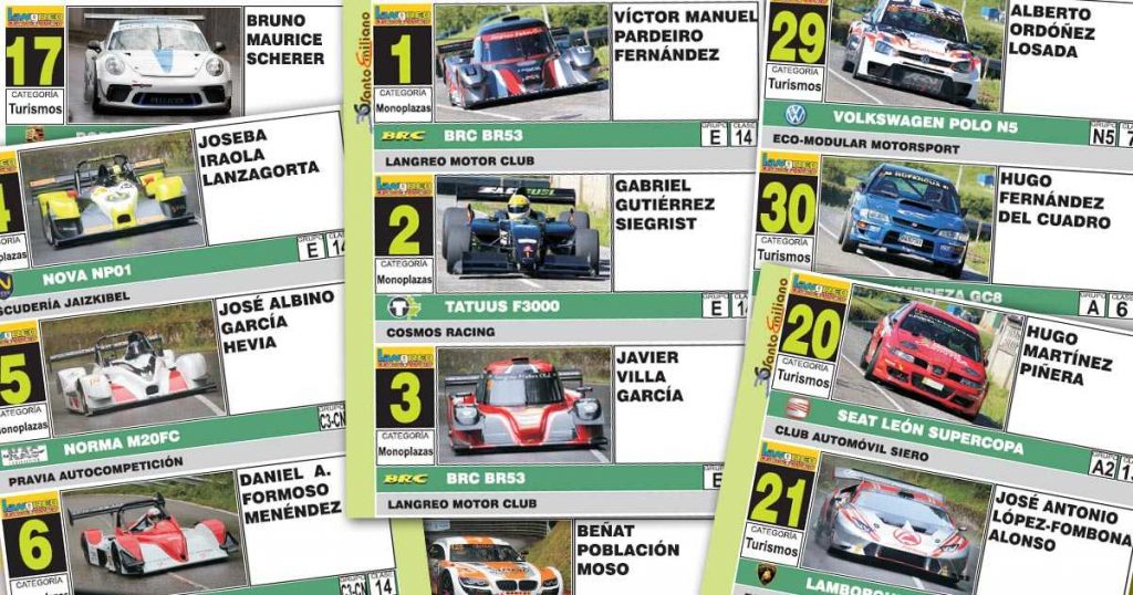 Además, en la edición número 36 de la subida langreana estarán presentes los principales aspirantes a los títulos del Campeonato de Asturias de Montaña en las dos categorías en que se divide este año el certamen, ‘Monoplazas’ y ‘Turismos’.