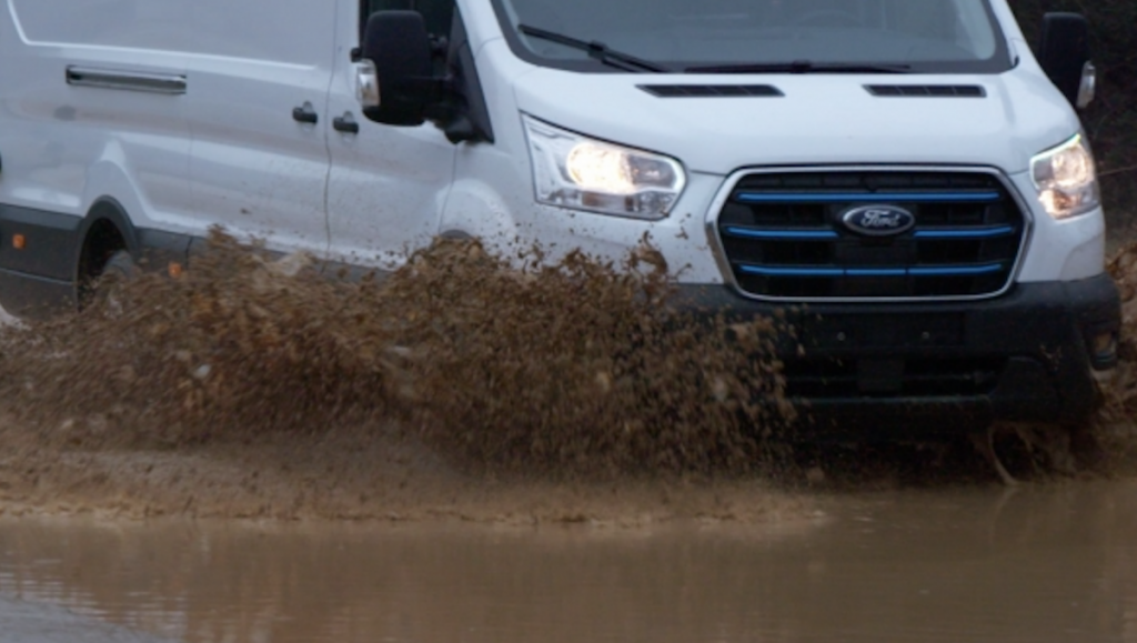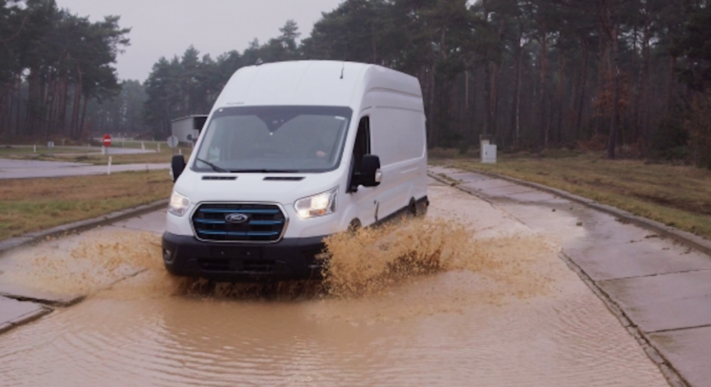 La durabilidad del paquete de baterías, el motor eléctrico y la exclusiva suspensión trasera de la ETransit se probó conduciendo repetidamente el nuevo modelo a través de baños de barro y sal y a través de chorros de agua salada, simulando carreteras y vados invernales, así como probando la resistencia a la corrosión de los componentes. La fiabilidad del motor eléctrico se probó haciéndolo funcionar continuamente durante 125 días.