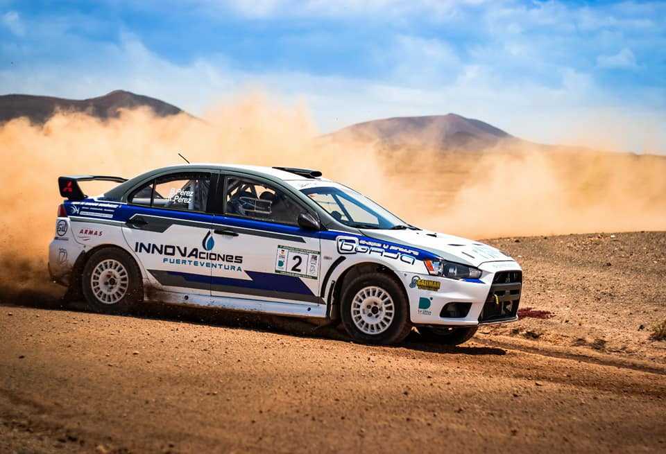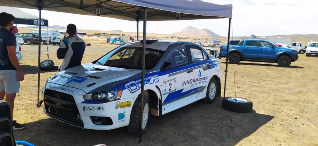 El piloto majorero Rubén Pérez fue uno de los que rodó en el Circuito de La Oliva (Fuerteventrua) a los mandos de su Mitsubishi Lancer Evo X para preparar su temporada 2021, aunque ya corrieron, aunque sin mucha suerte, en en la isla de La Palma en el Rally Isla Verde.