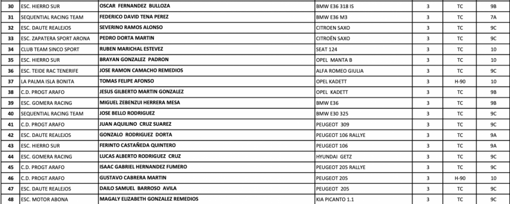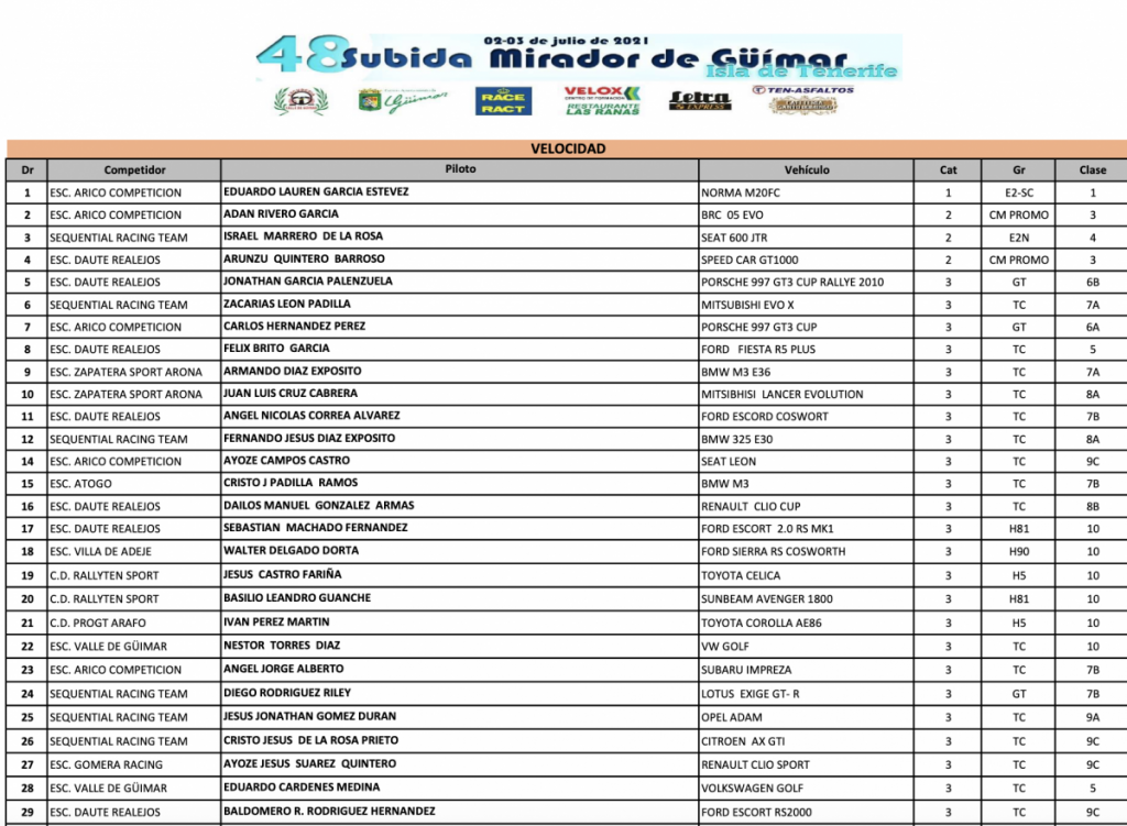 Publicamos la lista de inscritos de la 48 Subida Mirador de Güímar, cita que se disputará este fin de semana en la isla de Tenerife.