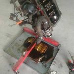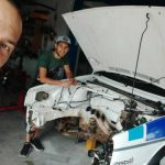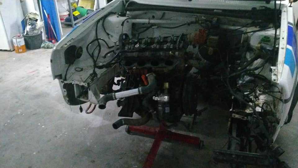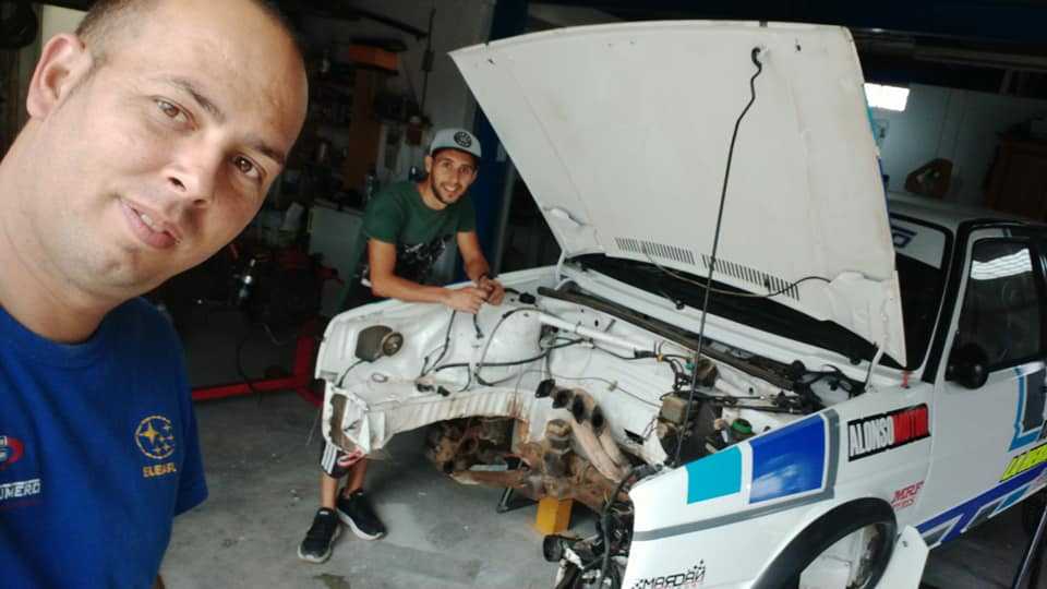 El piloto grancanario Cristian Calderín trabaja en su Volkswagen Golf de cara a tenerlo listo para estar en la cita del Campeonato de España de Rallys de Tierra, el Isla de Los Volcanes.