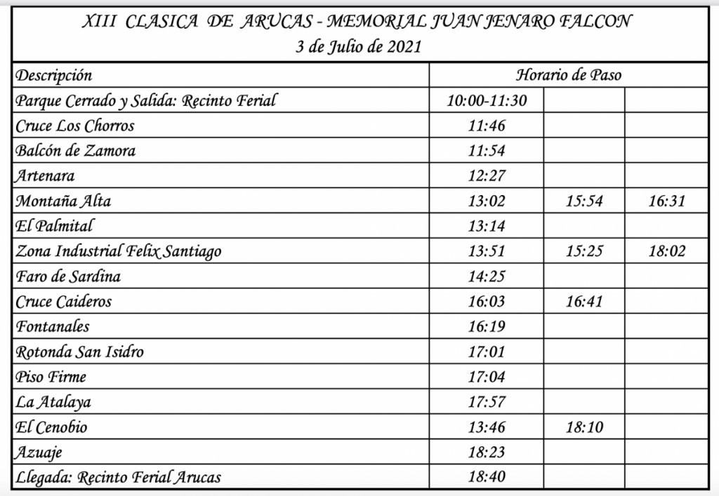 Orden de salida y horarios de paso XIII Clásica de Arucas Por Rafa León En 30/06/2021 11:14 Compartir FacebookTwitterWhatsAppEmailTelegramLinkedin Publicamos el orden de salida y horarios de paso de la XIII Clásica de Arucas (Gran Canaria). ArucaCanariasClásicaClásica de arucasEuropaGran CanariaLas PalmassEspaña Compartir