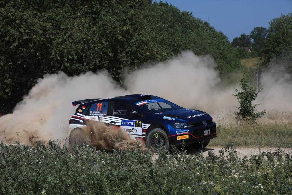 Nikolay Gryazin y K. Aleksandrov (Volkswagen Polo GTI R5) lideran el Rally de Letonia con los españoles Efrén Llarena y Sara Fernández (Škoda Fabia Rally2 evo) segundos a 4.9.