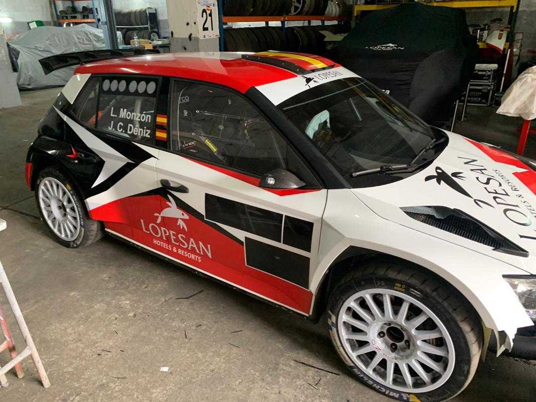 El nuevo Skoda Fabia Rally2 con el que los grancanarios Luis Monzón y José Carlos Déniz debutarán en el Rally Senderos de La Palma ya ha recibido los últimos retoques de rotulación antes de partir rumbo hacia la Isla Bonita para disputar la que será tercera cita del Regional.