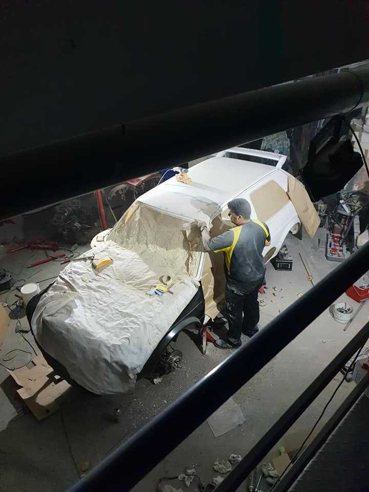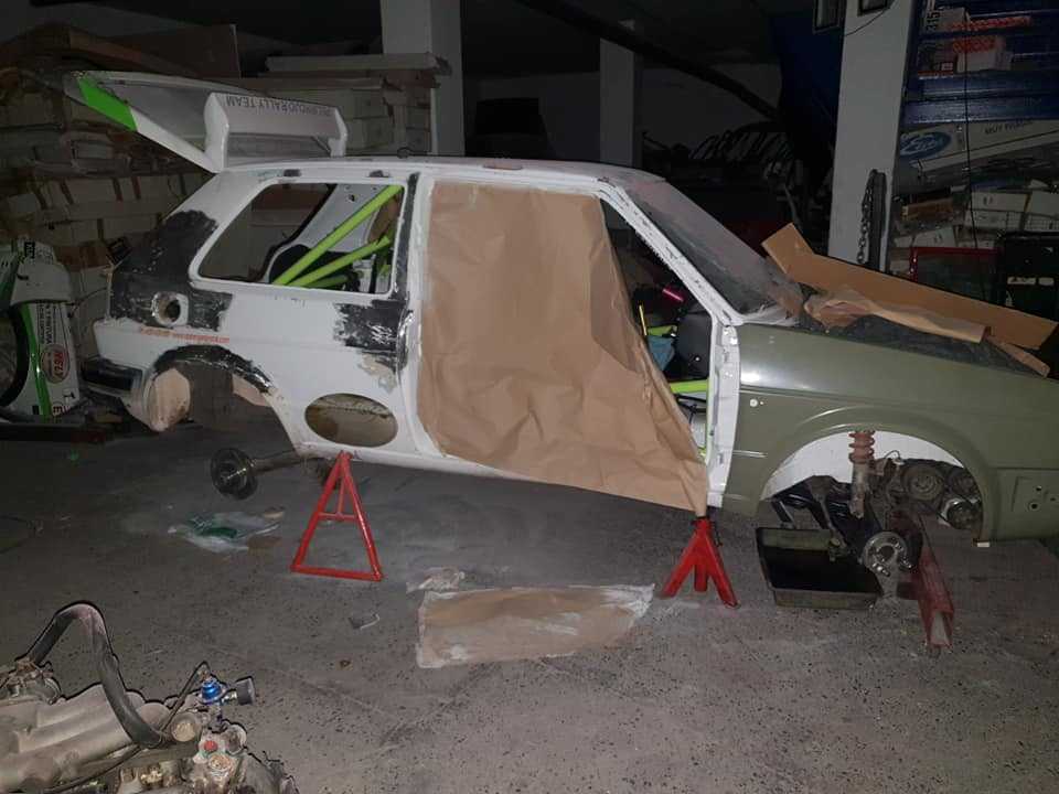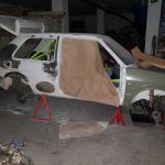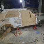 Todo el trabajo de chapa se e hizo en tres semanas y está hecho por mi, por lo que hay que estirar, enderezar, sustituir chapa. cuadrarlo todo y lijar para luego cambiar la mecánica delantera y trasera completa.