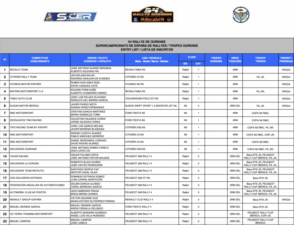 Publicamos la lista de inscritos del Rallye de Ourense 2021, siguiente cita del SuperCampeonato de España de Rallys.