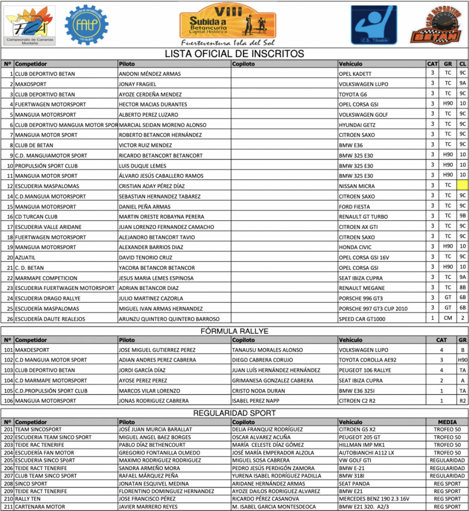 Publicamos la lista de inscritos Subida a Betancuria (Fuerteventura), cita del Campeonato de Canarias y Las Palmas de Montaña.