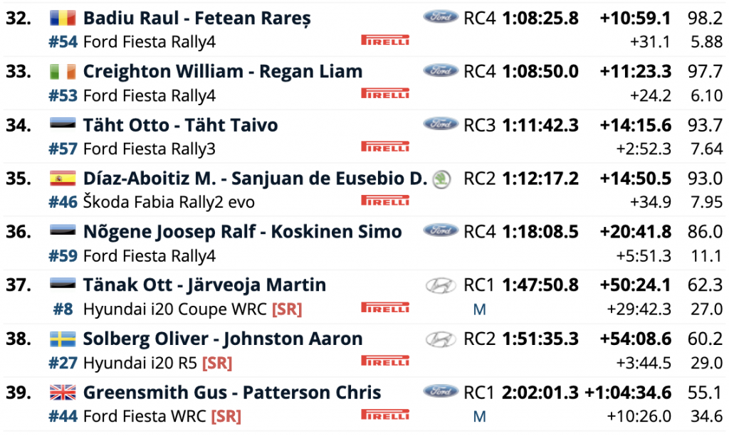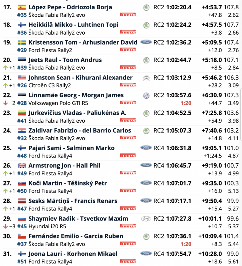 Después de invertir un tiempo de 1:06.54.4 han podido superar a los irlandeses Craig Breen y Paul Nagle (Hyundai i20 Coupé WRC), segundos, en sólo 8.5, por lo que las espadas siguen en todo lo alto para estos dos equipos no habituales en la lucha por la victoria.