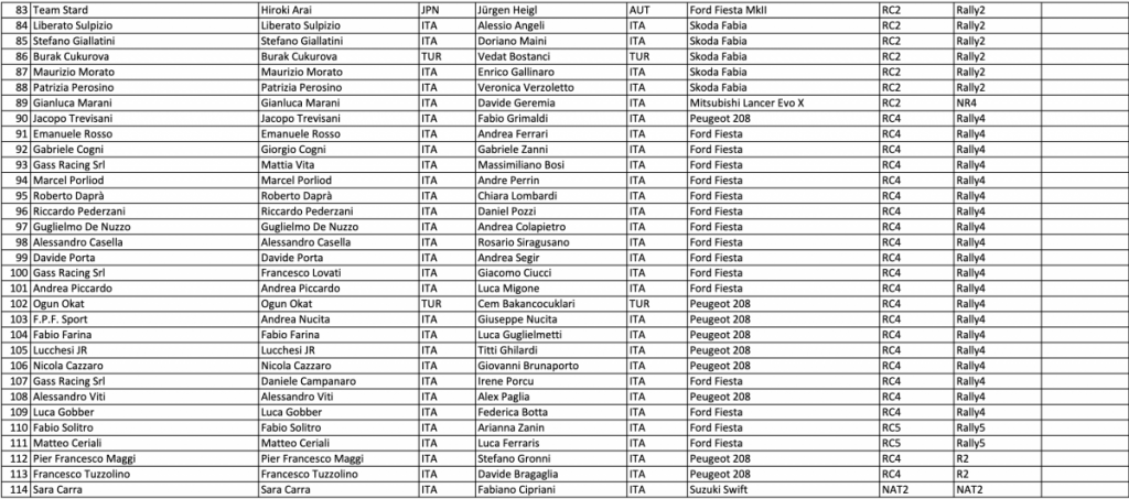 Además de las inscripciones de 63 equipos de ERC, el organizador del evento Motorsport Italia ha atraído a otros 36 participantes para el evento internacional para un total masivo de 99 inscripciones.